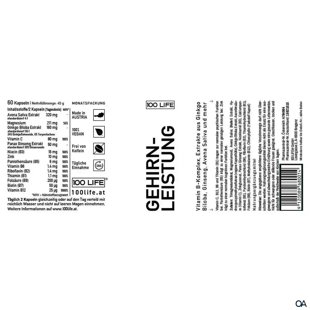 Produktinformationen "100 LIFE Gehirnleistung Kapseln"