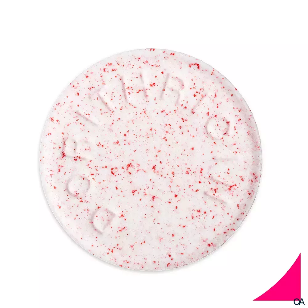 - Die sonstigen Bestandteile sind: Sorbitol (E 420), Talkum, Saccharosestearat Typ III, Saccharin-Natrium-Dihydrat, Aroma (enthält Ponceau 4R (E 124)), Povidon K25, Carmellose-Natrium.