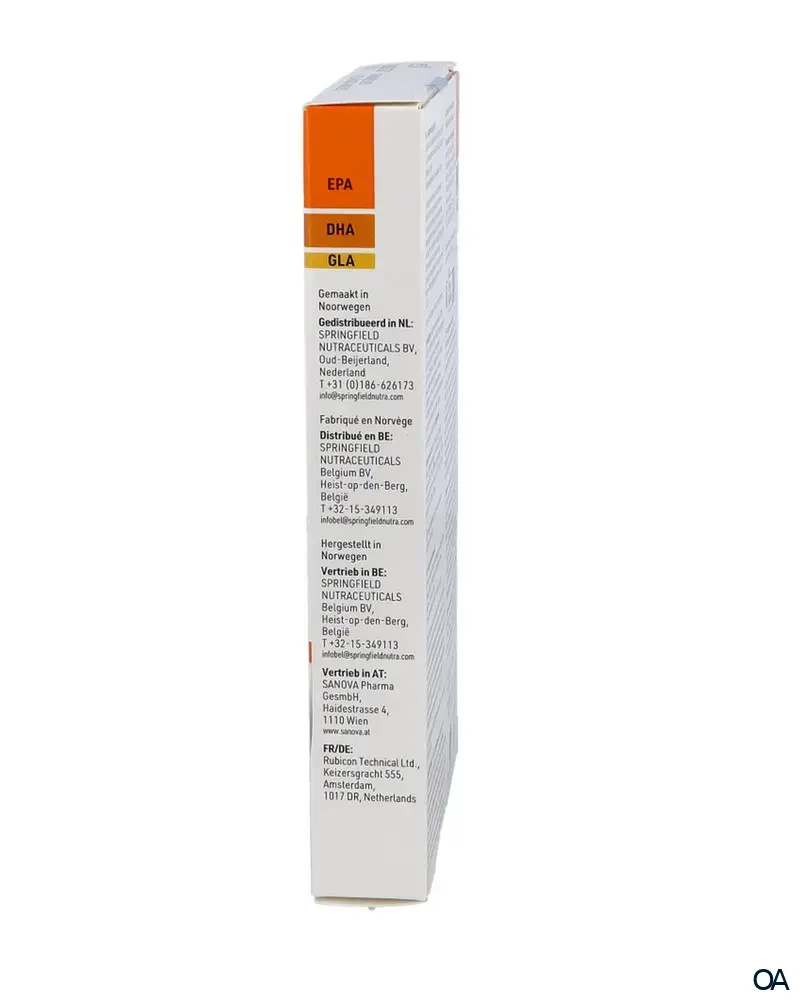 - Zutaten: Konzentriertes Fischöl (33%) (Chile); Süßungsmittel: Xylit, Sorbit, Steviolglycoside aus Stevia; gereinigtes Wasser; Borretschöl (Borago Officinalis L.); Fischgelatine; Säureregulatoren: Natriumcitrate, Apfelsäure; Aromen (Erdbeeraroma, Zitronenaroma, Orangenaroma); Verdickungsmittel: Gummi arabicum; Antioxidationsmittel: Ascorbinsäure; Farbstoff: Paprikaextrakt.