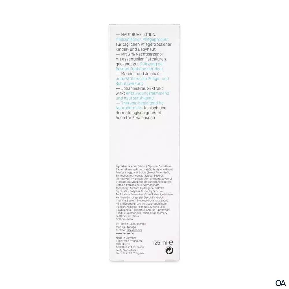 Eubos HAUT RUHE LOTION - Die leicht verteilbare O/W-Emulsion mit 6 % Nachtkerzenöl, Mandel- und Jojobaöl wird für die tägliche Ganzkörperpflege bei trockener Kinder- und Baby-Haut empfohlen.