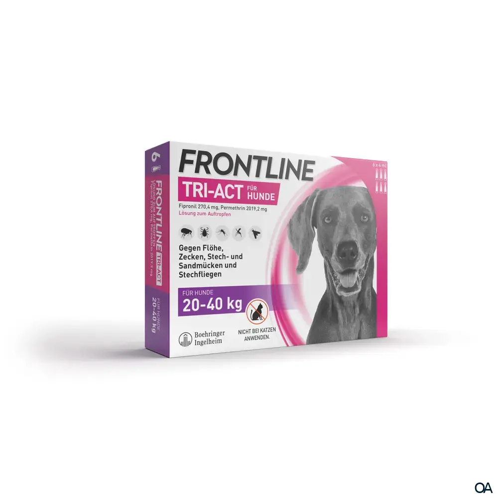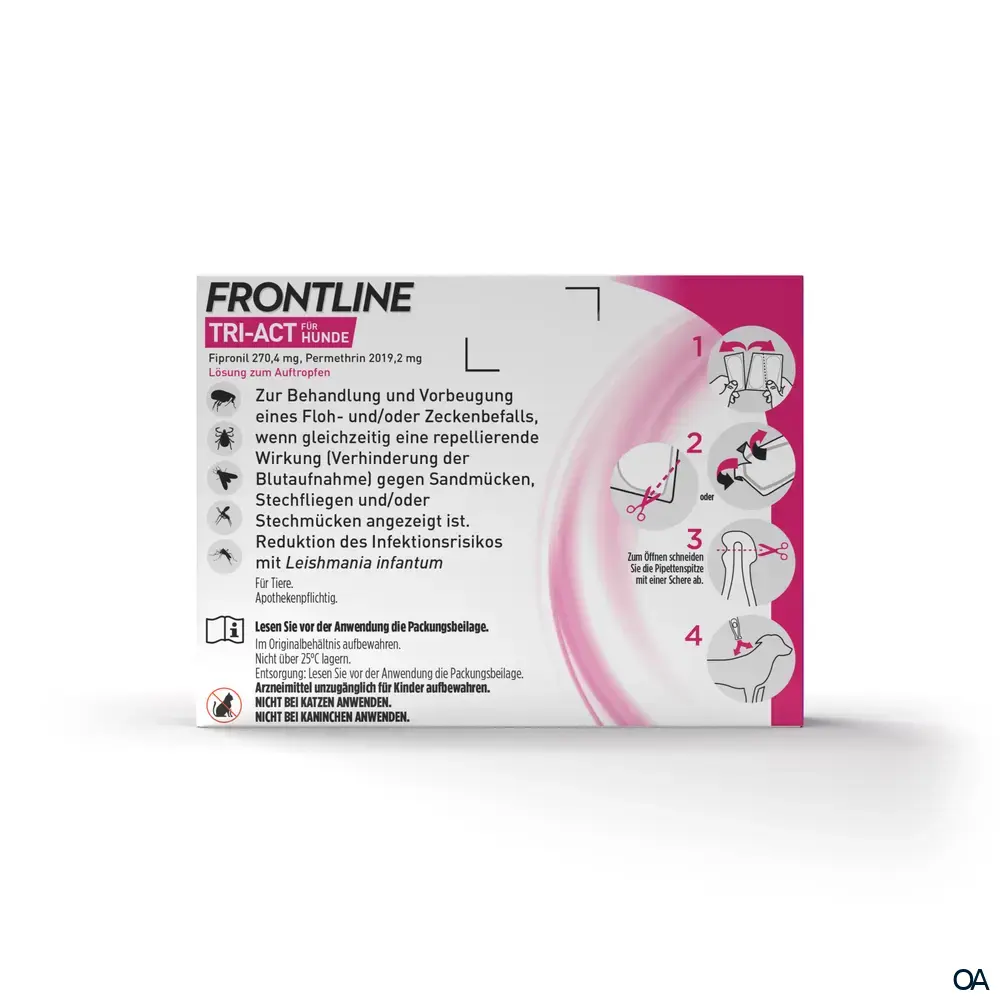 Frontline TRI-ACT® ist ein Tierarzneimittel zur Behandlung und Vorbeugung eines Floh- und/oder Zeckenbefalls, wenn gleichzeitig eine repellierende Wirkung (Verhinderung der Blutaufnahme) gegen Sandmücken, Stechfliegen und/oder Stechmücken angezeigt ist.