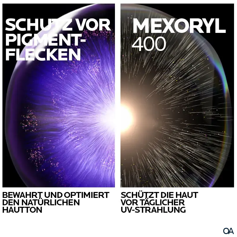 - Schützt vor UVA- und UVB-Strahlen und verhindert die Neuentstehung von Pigmentflecken