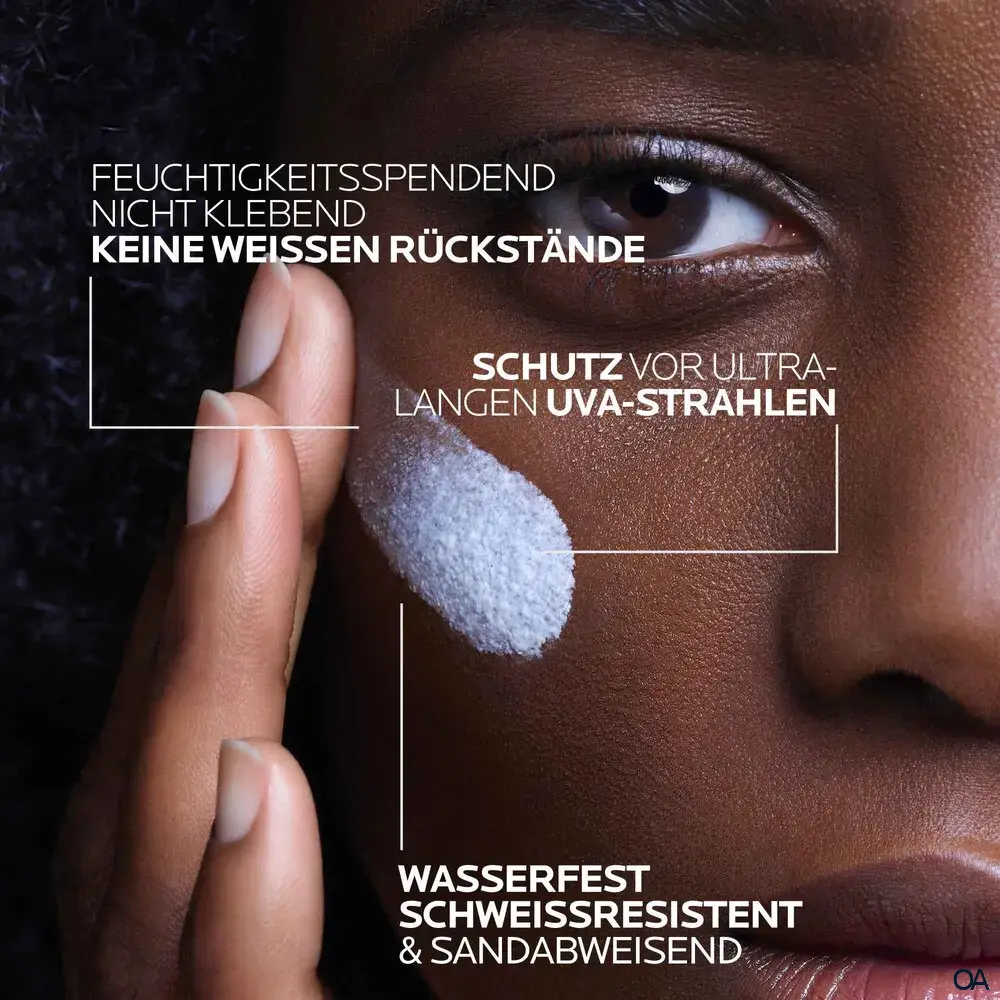 Die La Roche Posay ANTHELIOS UV Mune 400 Hydratisierende Gesicht + Körper Milch LSF 50+ sorgt dank des Filters Mexoryl 400 für einen sehr hohen Schutz vor den schädigenden Auswirkungen der UVA- und UVB-Strahlung sowie vor langwelligem UVA. Weitere Bestandteile des Sonnenschutzes für Erwachsene und Kinder ist antioxidativ wirkendes Vitamin E sowie nährendes Glycerin, welches die Haut mit Feuchtigkeit versorgt. Sie eignet sich für empfindliche und zu Sonnenallergie neigende Haut an Gesicht und Körper. Die leichte Textur der Creme zieht schnell ein, ohne weiße Rückstände oder ein klebendes Gefühl zu hinterlassen. Darüber hinaus ist der Sonnenschutz resistent gegenüber Wasser, Schweiß und Sand.