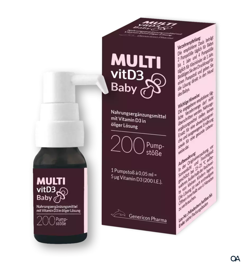 Die handliche Flasche mit Dosierpumpe macht MULTIvitD3 Baby für den Anwender besonders attraktiv. MULTIvitD3 Baby ist die ideale Vitamin-D-Lösung für dich und dein Baby! MULTIvitD3 Baby liefert deinem Baby Vitamin D3 in einer öligen Lösung. Der besondere Vorteil: Die praktische Dosierpumpe ermöglicht eine individuelle Dosierung und ist besonders einfach in der Handhabung.