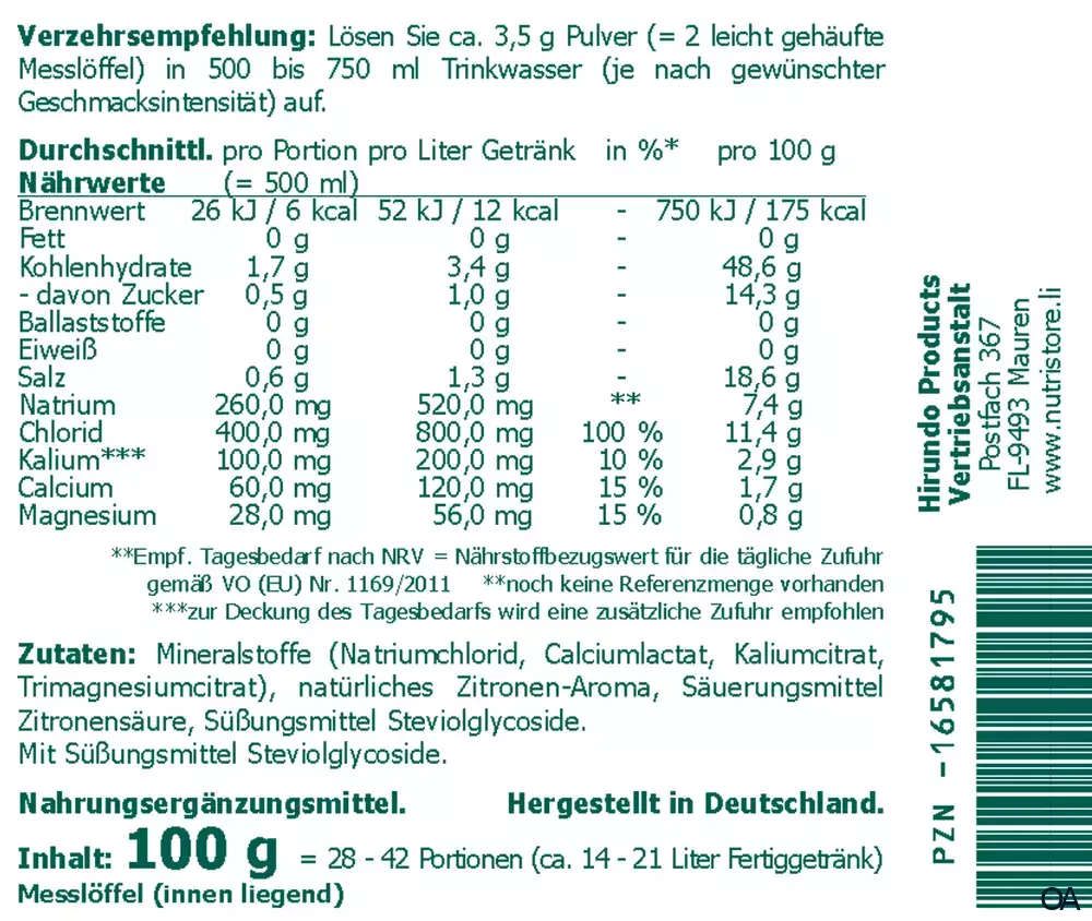 The Nutri Store Elektrolyt Mineral Drink Zitrone Pulver