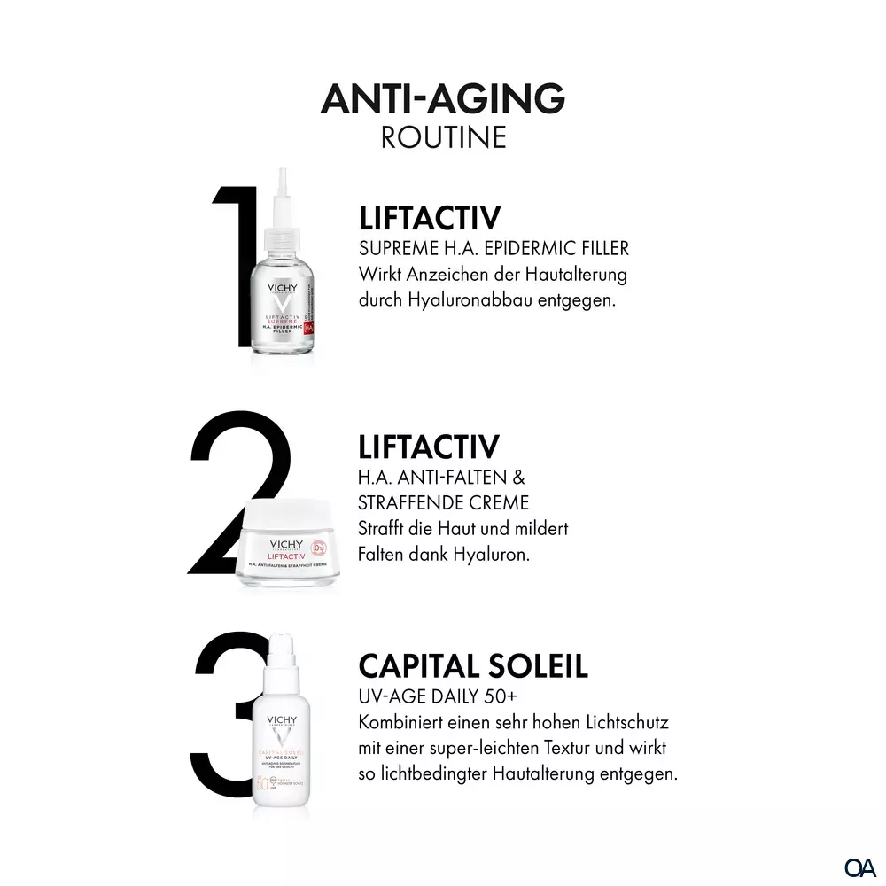 Vichy Liftactiv Anti-Falten & straffende Hyaluron Creme ohne Duftstoffe spendet der Haut dank Hyaluron langanhaltende Feuchtigkeit.